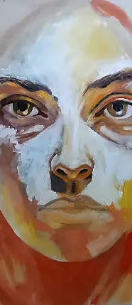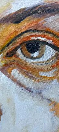 Descripción: Este rostro lo pinté tomando como referencia una imagen generada con IA, el concepto es retratar a alguien que no existe, que fue creado artificialmente, pero retratarlo de la forma más clásica que conocemos, que es pintandolo en una tela, como queriendo hacerlo realidad.
