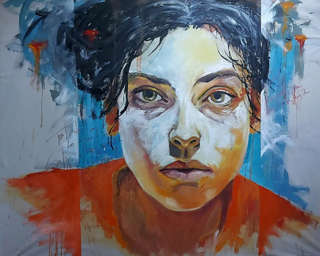 Descripción: Este rostro lo pinté tomando como referencia una imagen generada con IA, el concepto es retratar a alguien que no existe, que fue creado artificialmente, pero retratarlo de la forma más clásica que conocemos, que es pintandolo en una tela, como queriendo hacerlo realidad. Esta obra está en Buenos Aires - Argentina